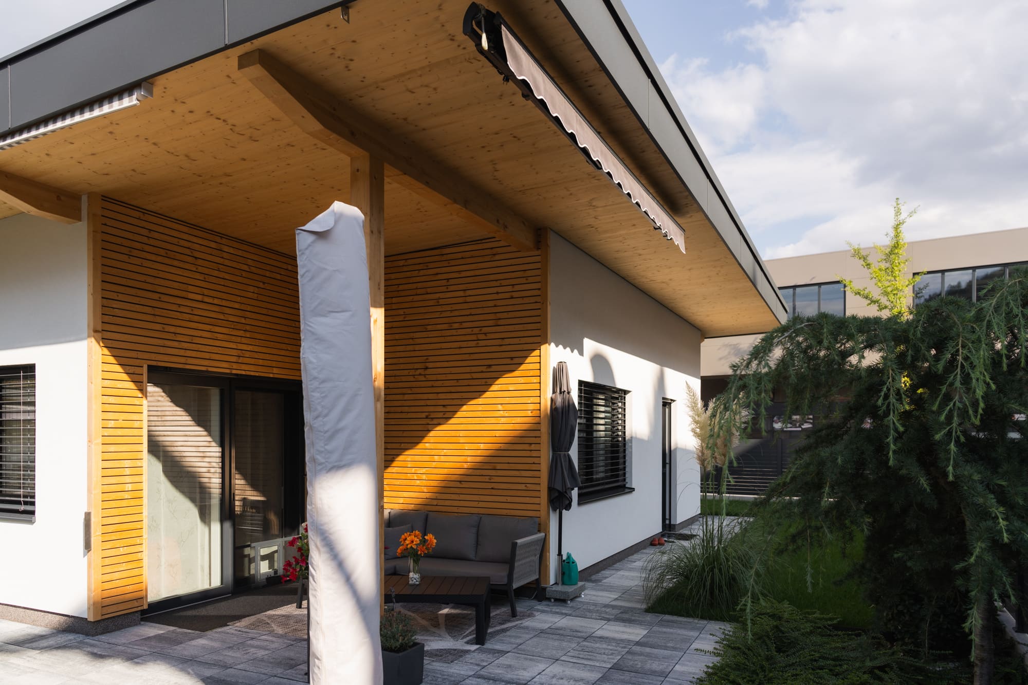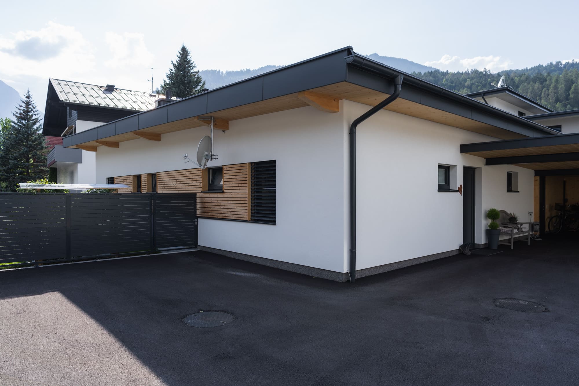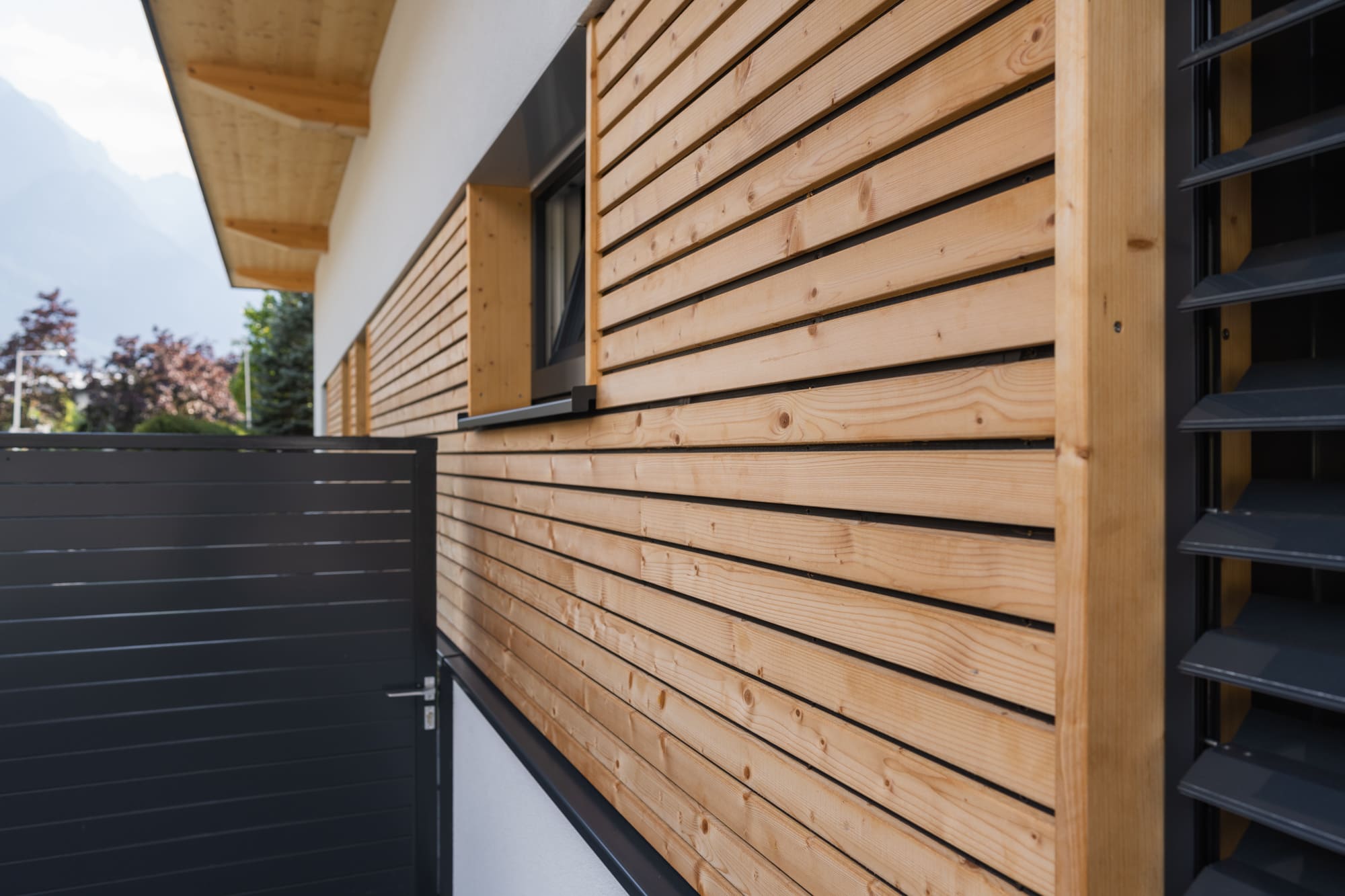 Fassade:Putz, teilw. Rhomboline Fichte Kontrast