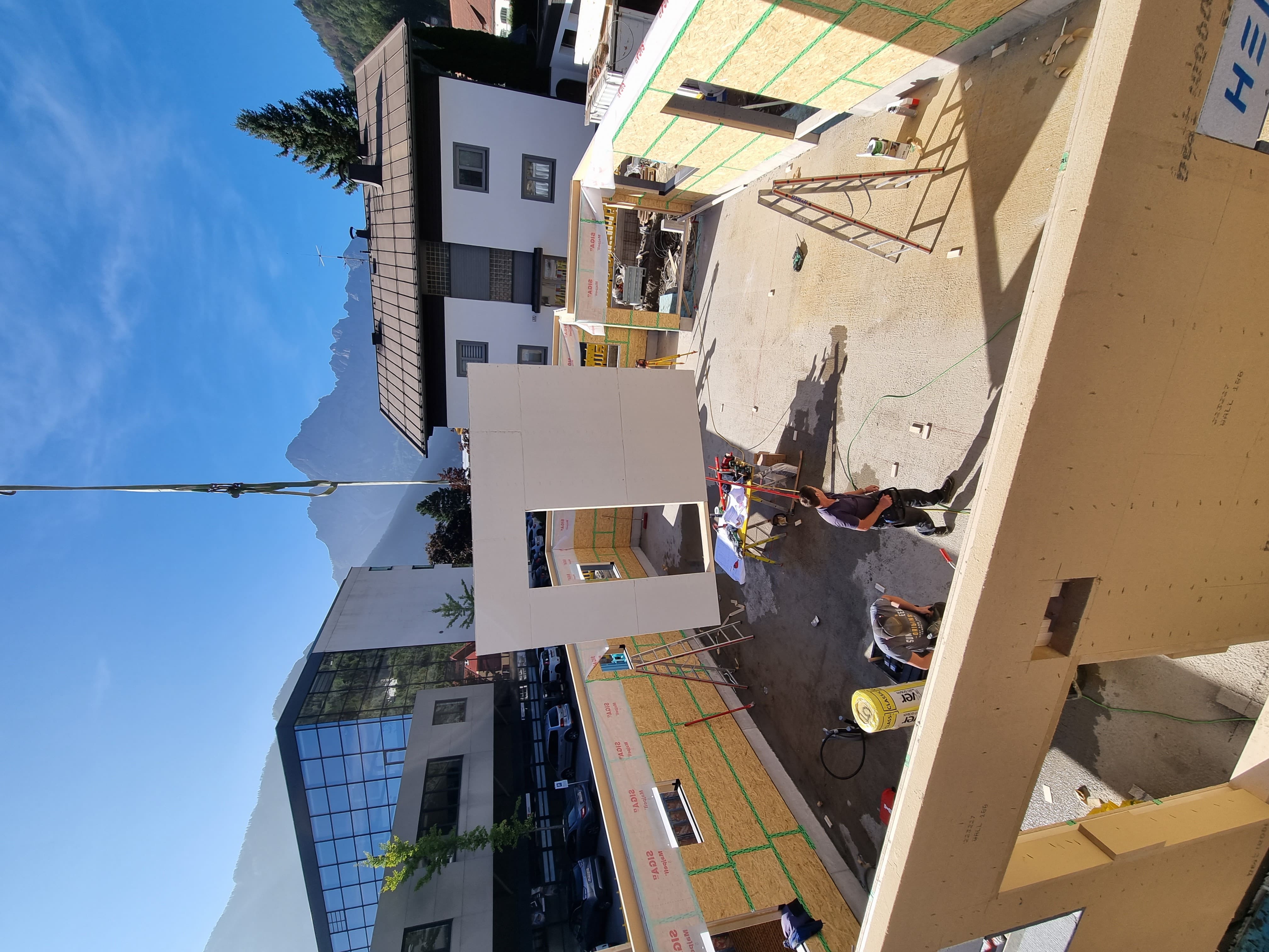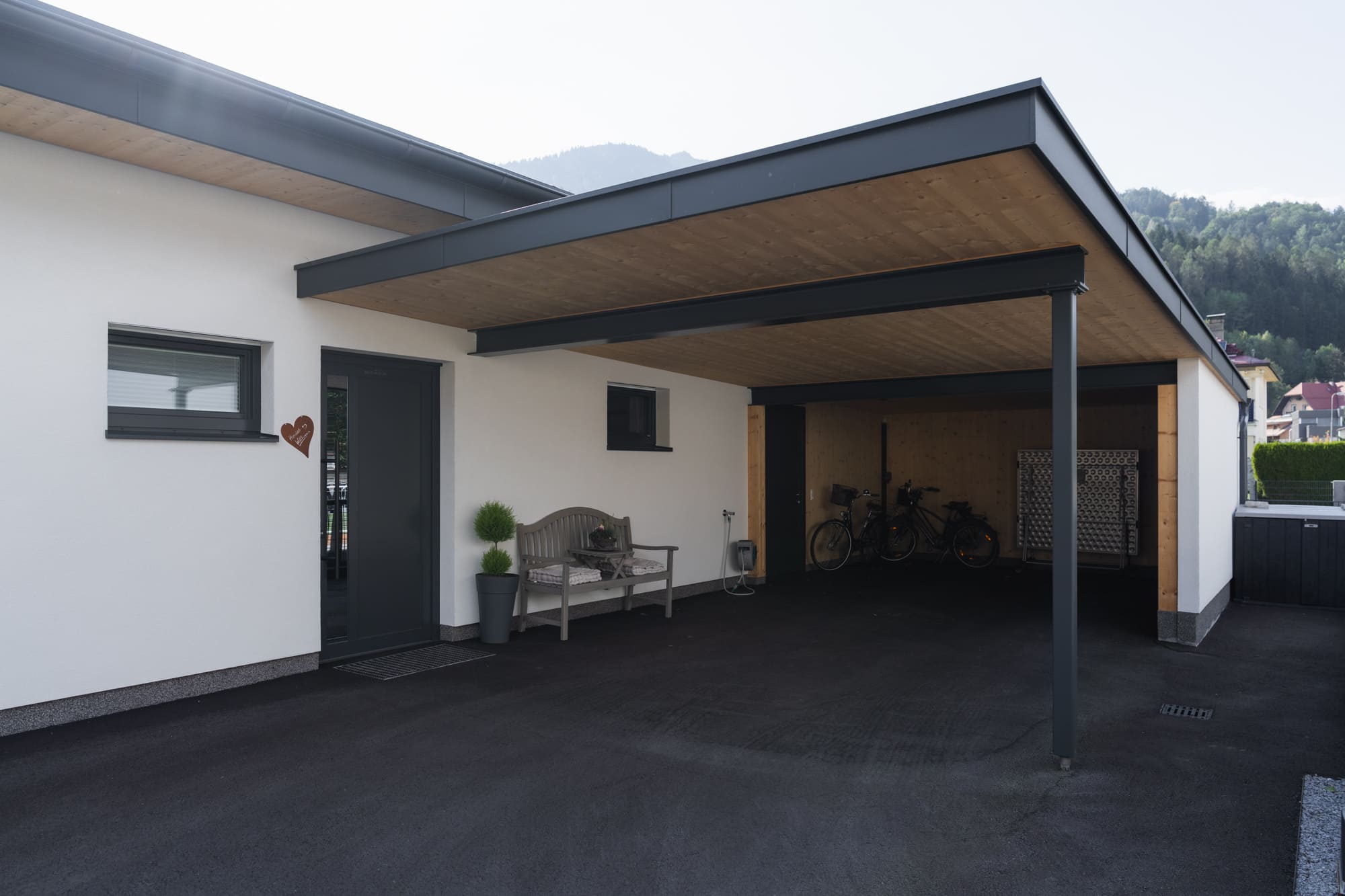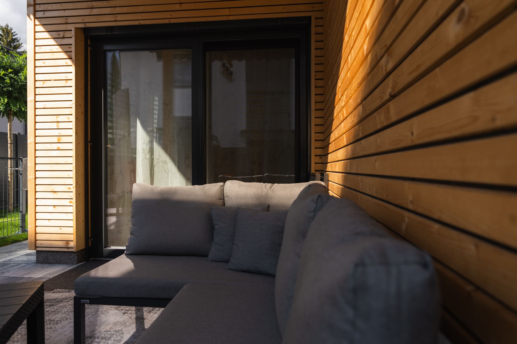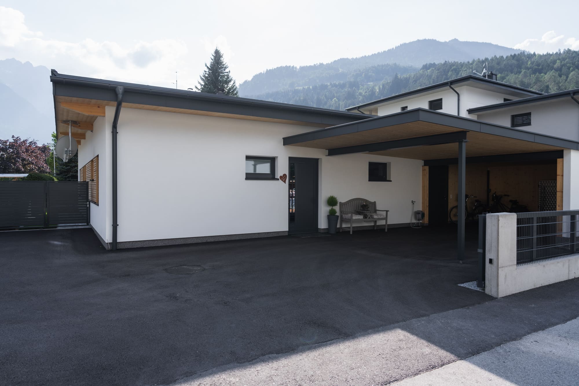 Fassade:Putz, teilw. Rhomboline Fichte Kontrast